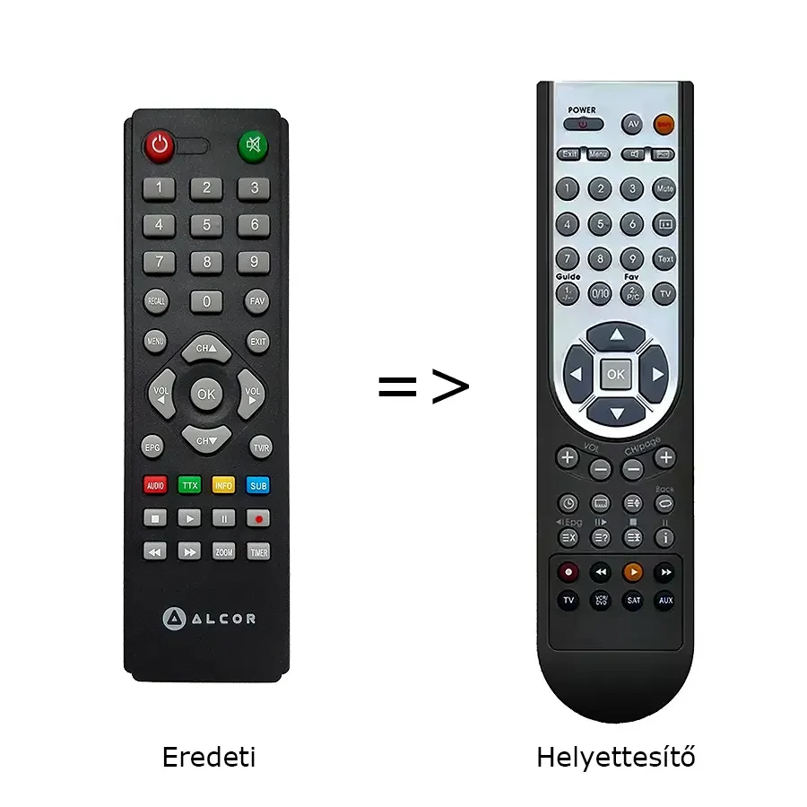 A Helyettesítő távirányító egy sokoldalú, több készülék vezérlésére is alkalmas eszköz, amely jelenleg kifejezetten előre be van programozva a Alcor HDT-4400 beltéri egységhez, így azonnal használható, beállítást nem igény.