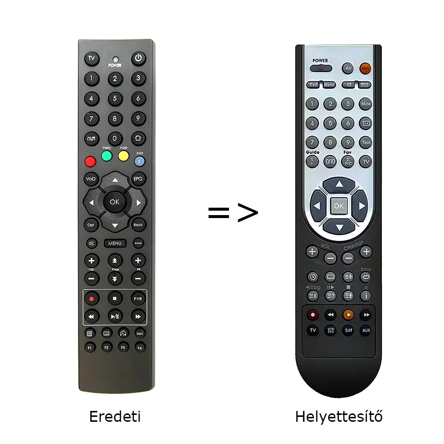 A távvezérlőn megtalálja az összes funkciót, ami az adott eszközhöz(TV, DVD, stb..) kapott távvezérlőn is volt.