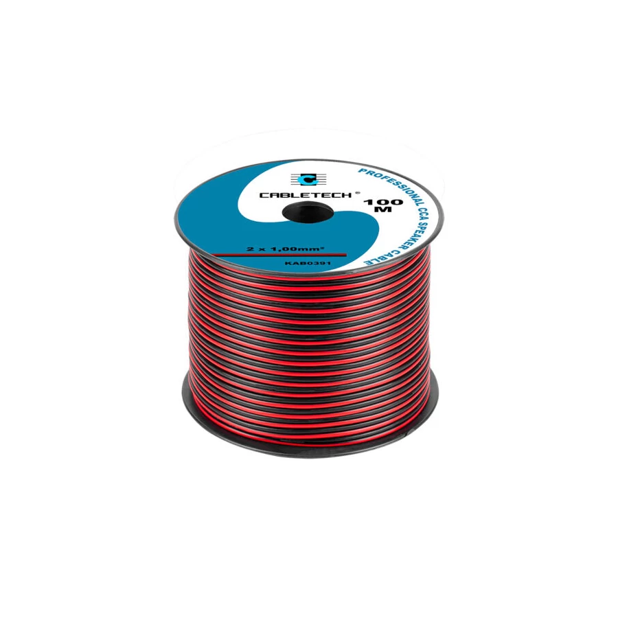 A piros-fekete színű, 2x1mm² keresztmetszetű réz-alumínium (CCA) vezeték kiváló hangátvitelt biztosít alacsony jelveszteséggel.