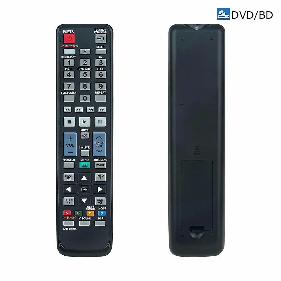 SAMSUNG AH59-02303A távirányító Blu-Ray, utángyártott. Ez azt jelenti, hogy gombkiosztásban megegyezik a gyári távirányítóval, de nincs rajta márkajelzés. Az utángyártott távirányítóknál nincs szükség beállításra, a távirányító megérkezésekor az elemek behelyezése után egyből tudja használni az adott eszközzel(TV, DVD, stb..). A mennyiben nem találja a készülék típusszámát, küldje el részünkre és utánanézünk melyik távirányító jó hozzá.
