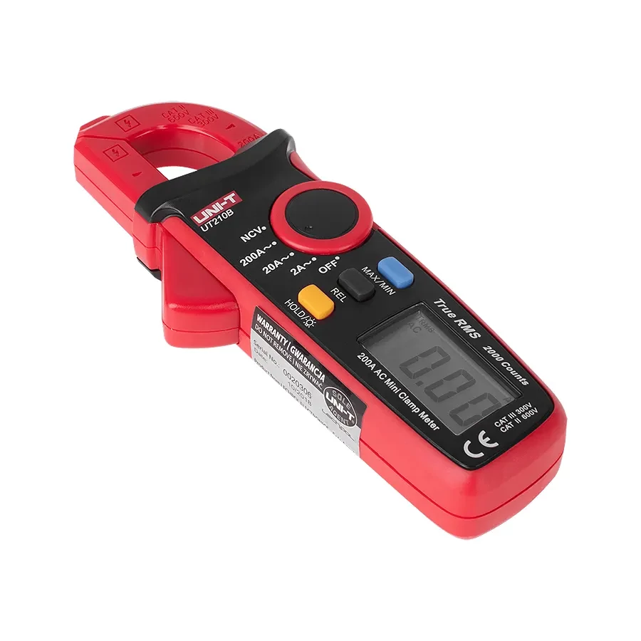 Az UT210B zsebméretű lakatmérő TRUE RMS funkcióval lehetővé teszi a gyors és kényelmes AC terhelésmérést 2A/20A/200A-ig. A készülék könnyű és nagyon könnyen használható, Olyan villanyszerelők számára hasznos, akik naponta gyakori és gyors elektromos vizsgálatokat végeznek. A mérési hibák elkerülése érdekében a készülék alacsony akkumulátortöltöttség-jelzővel rendelkezik. Ezenkívül az akkumulátor élettartamának maximalizálása érdekében a mérőműszer automatikus kikapcsolási opcióval van felszerelve.